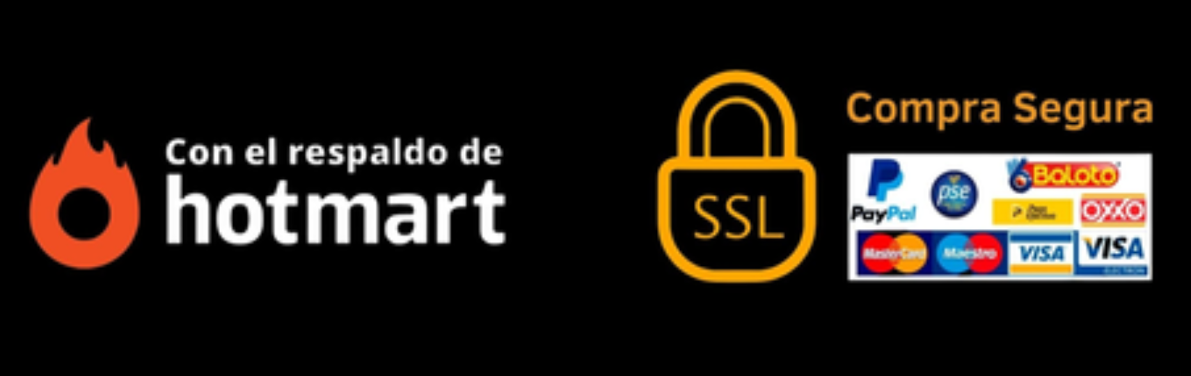 El pago es realizado de forma 100% segura por medio de Hotmart, la plataforma de venta de productos digitales más grande y segura de habla hispana que cuenta con un certificado de seguridad, siendo uno de los procesadores de pago más importantes del mundo que opera en más de 160 países.